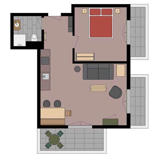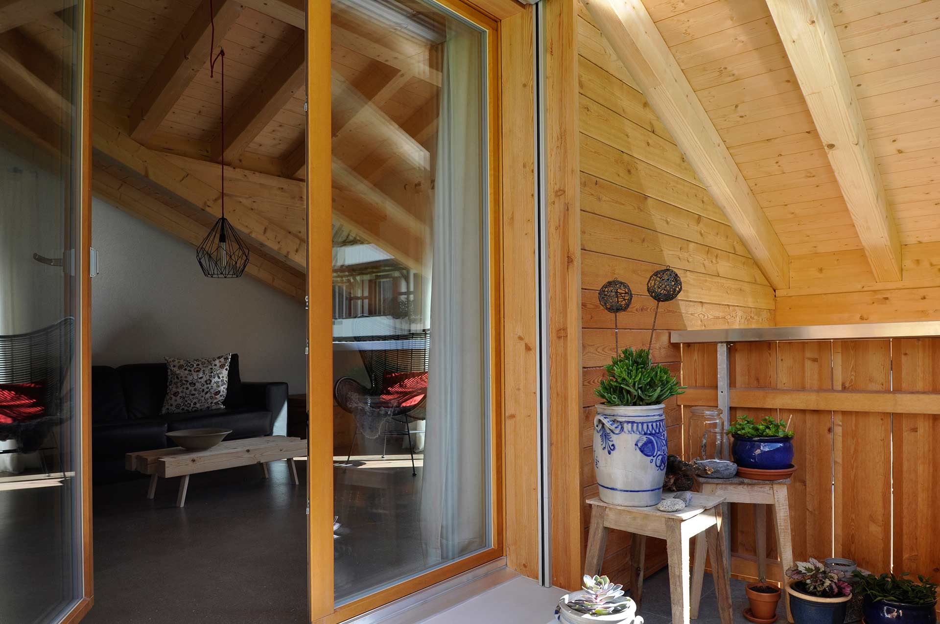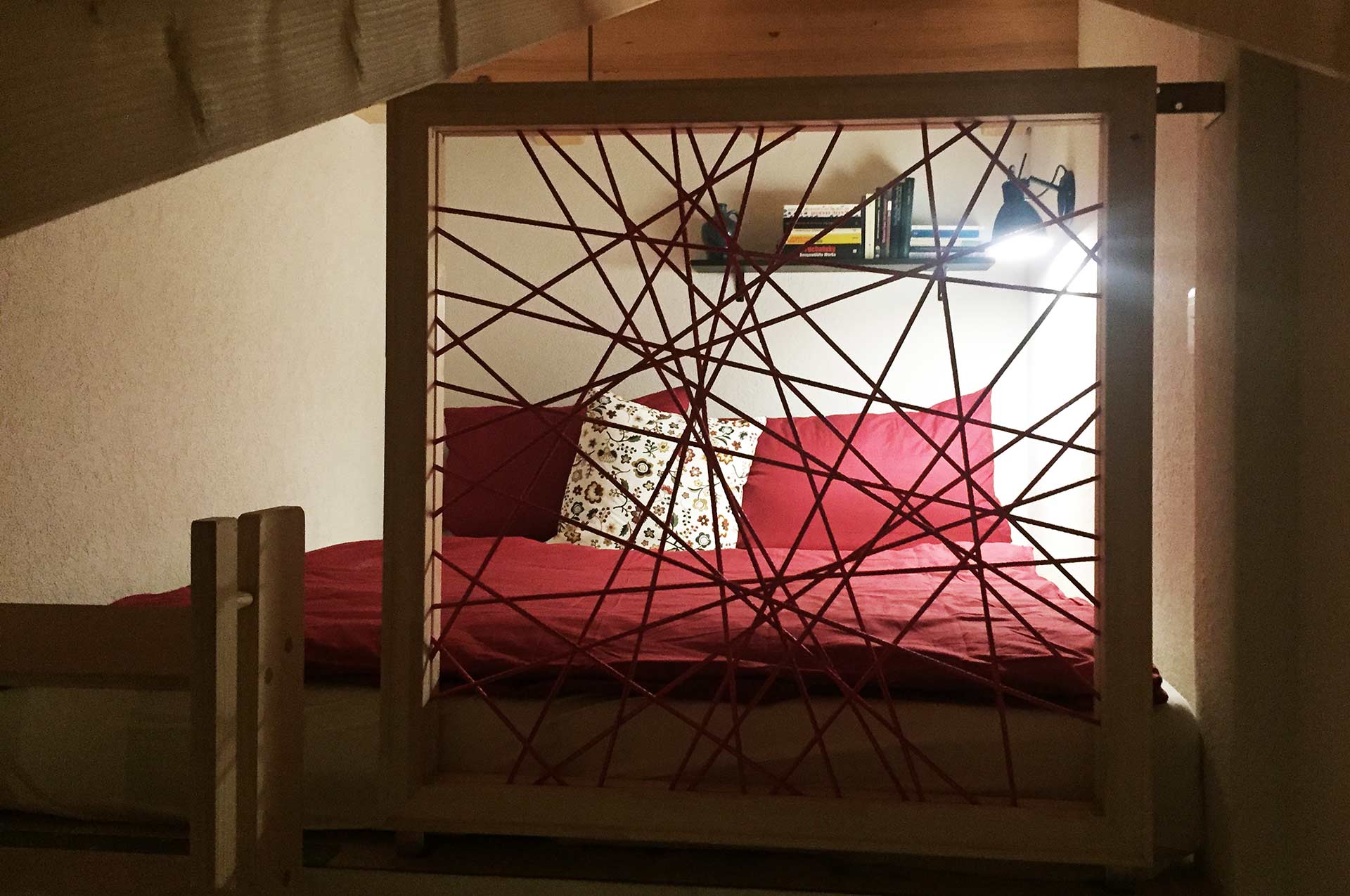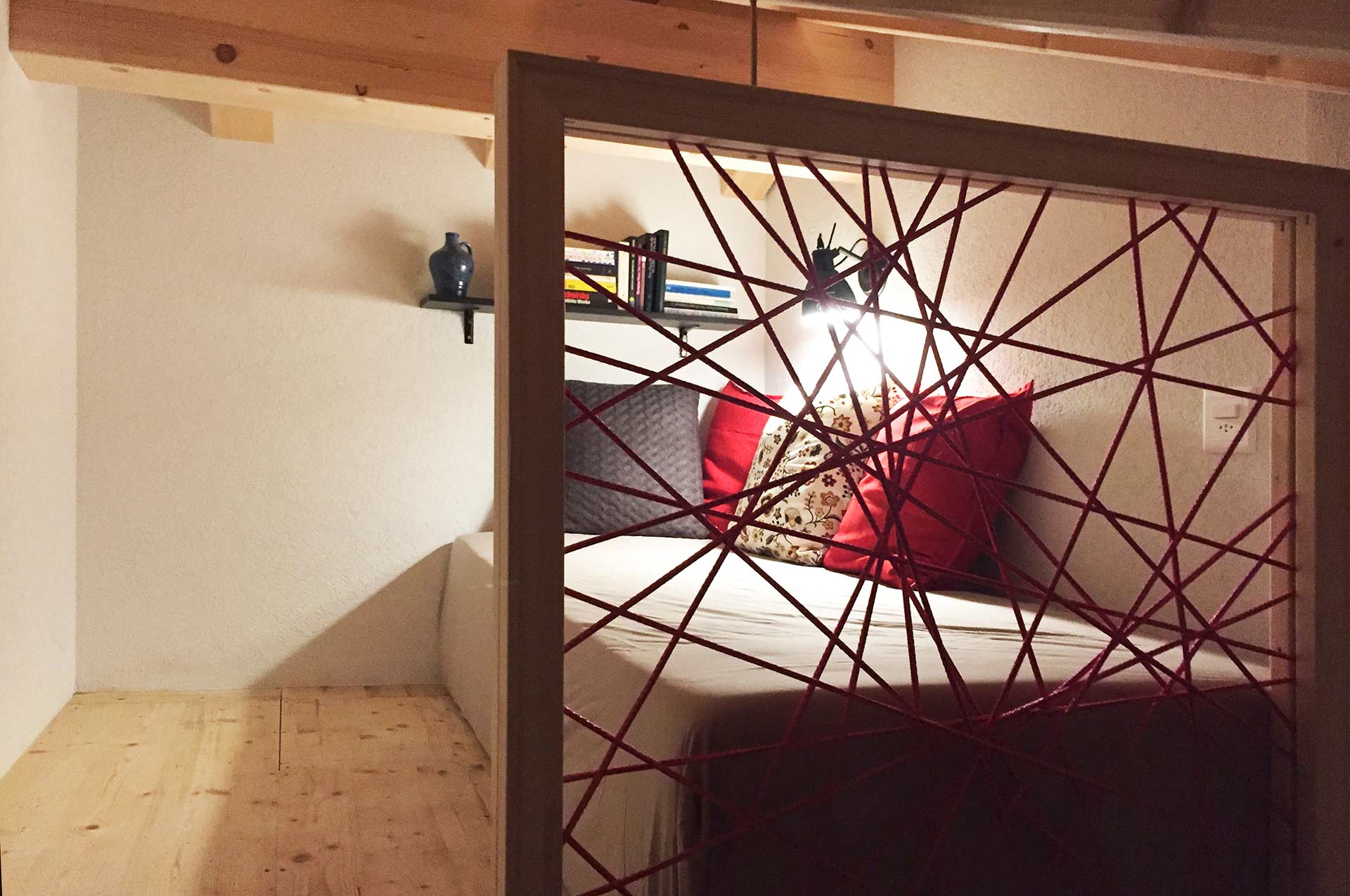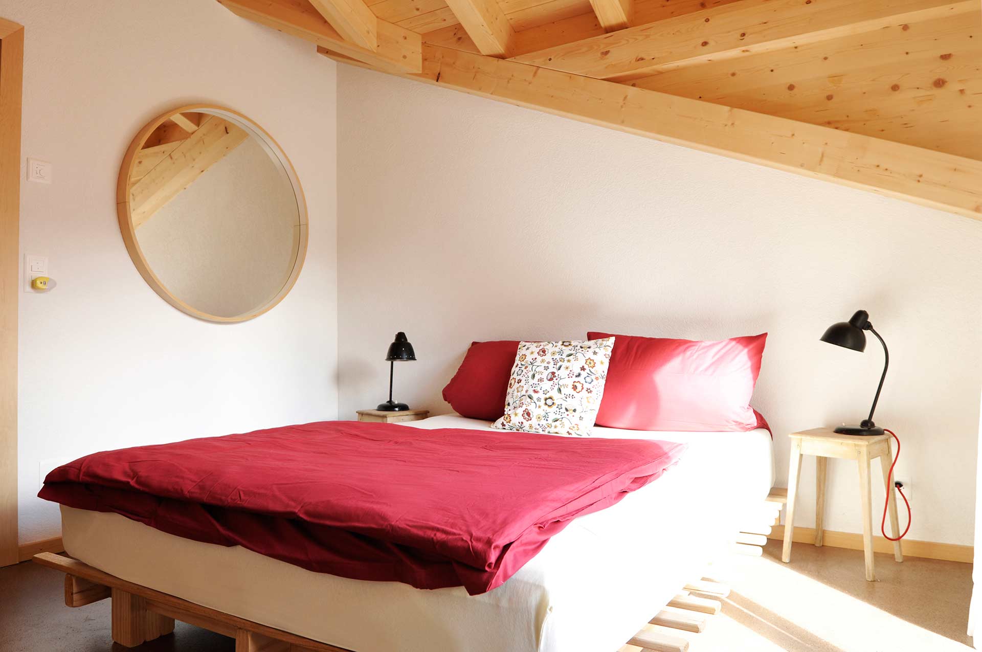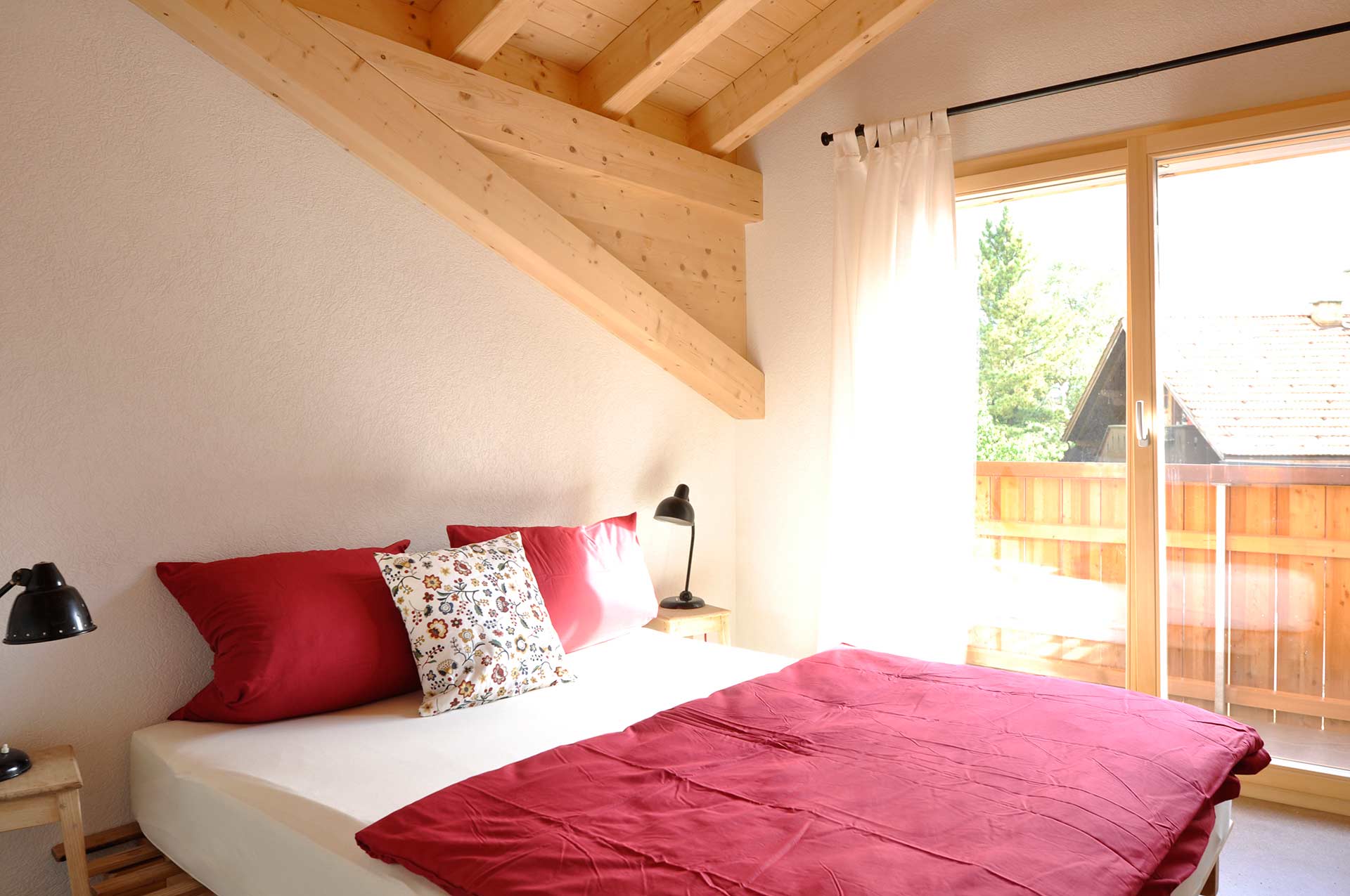 A special feature of this apartment is the small mezzanine below the roof’s ridge. A retractable staircase leads you up to this niche that contains 2 mattresses. The mezzanine can be used as a bed for two additional people. It has a small skylight through which you can watch the stars while lying in bed on a clear night.