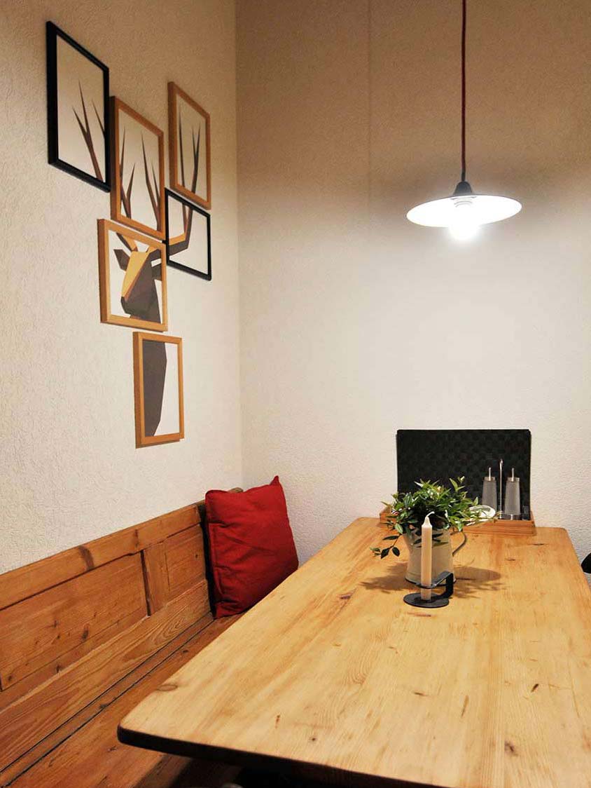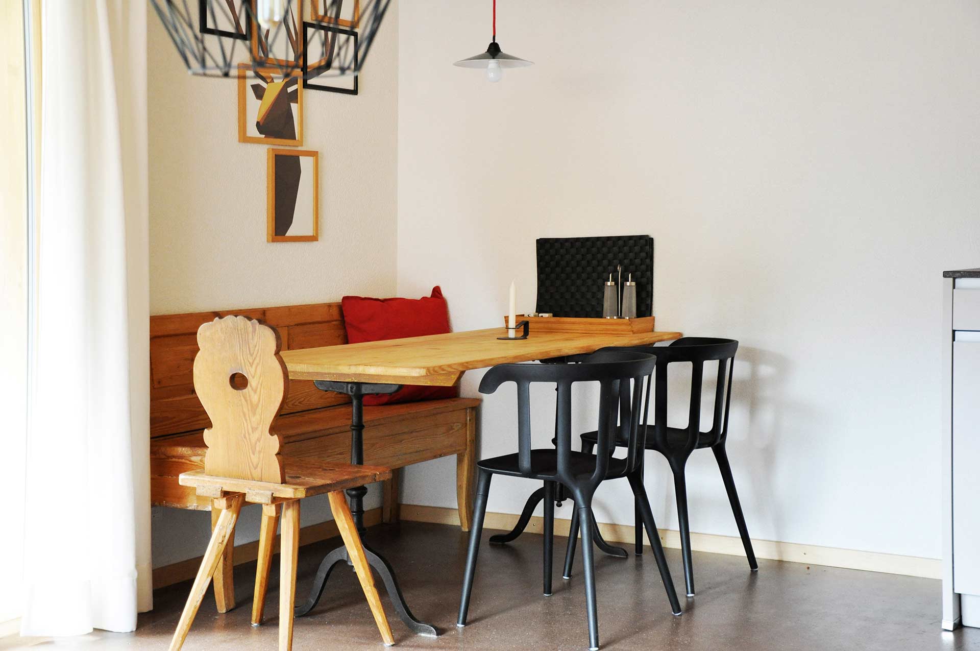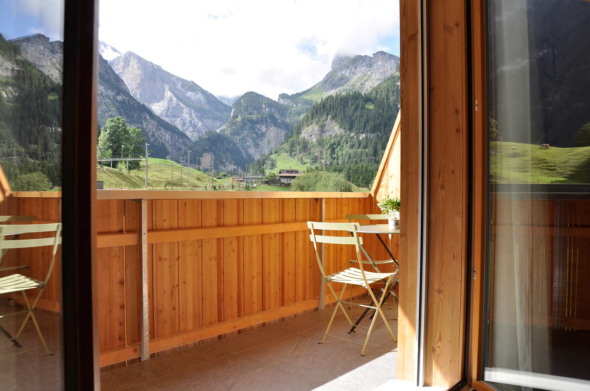 A sofa and armchairs in the living room are your invitation to relax. Tucked away in the antique rustic wardrobe you will find a 32-inch Full HD television with over 100 channels. You may want to use it to relax for a couple of hours despite (or perhaps because of) the number of outdoor activities on offer in Kandersteg.